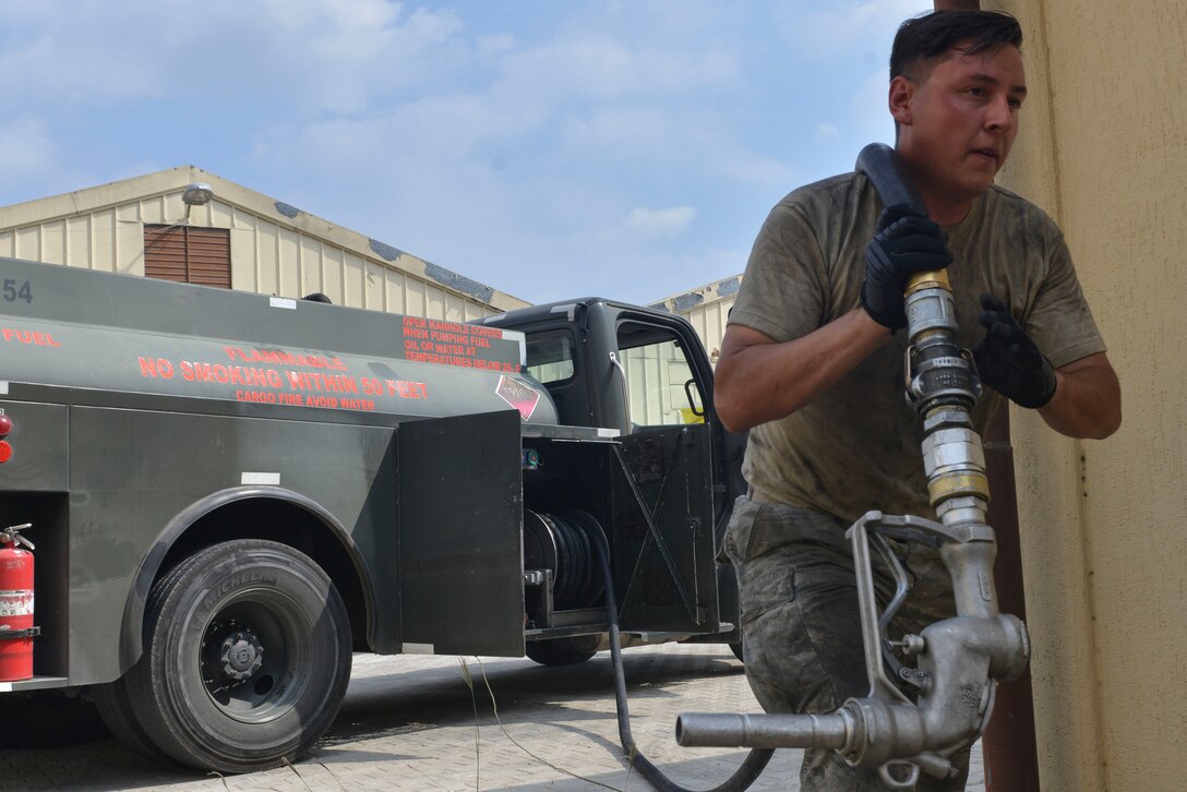 U.S. Air Force Airman 1st Class Trenton Beard, 39th Logistics Readiness Squadron fuels specialist, carries a hose to a generator July 19, 2016, at Incirlik Air Base, Turkey. Base personnel worked to keep electrical power supplied to the installation, ensuring mission readiness. (U.S. Air Force photo by Senior Airman John Nieves Camacho)
