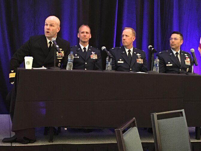 Defense Logistics Agency Land and Maritime Commander Navy Rear Adm. John Palmer participated in a panel discussion Oct. 7 alongside Col. Joseph Janik, commander of the 910th Air Wing at Youngstown Air Reserve Station, Col. Gregg Hesterman, commander of the Springfield Air National Guard’s 178th Wing, and Col. Tom Sherman, commander of the 88th Air Base Wing based at Wright Patterson Air Force Base. The military commanders discussed their individual military capabilities and mission during their participation in the 2019 Ohio Defense Forum.