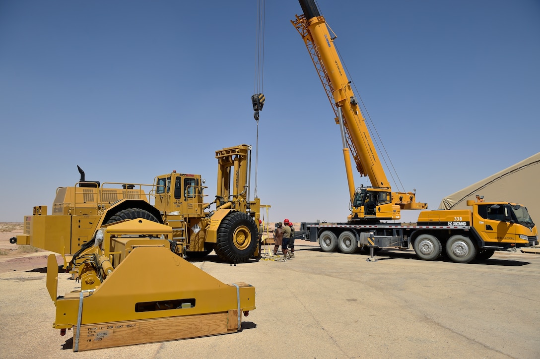 Airmen from the 378th Expeditionary Logistic Readiness Squadron Vehicle Management conduct maintenance daily to keep the base operational at Prince Sultan Air Base, Kingdom of Saudi Arabia, Sep. 8, 2020. From ambulances to loaders and firetrucks to Humvees, vehicle maintenance can work on and repair about anything with wheels, and even some without. (U.S. Air Force photo by Staff Sgt. Cary Smith)
