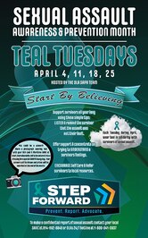 Employees are encouraged to wear teal on Tuesdays as part of a recognizable effort to raise awareness about the prevention of sexual assault.