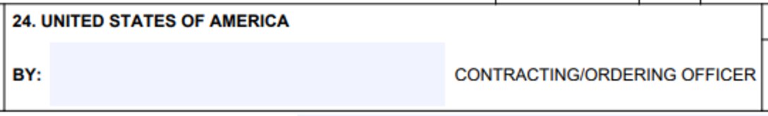 Box 24 of the Order for Supplies or Services (DD1155 Form) for United States of America Contracting/Ordering Officer signature block
