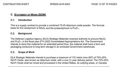 Example of DLA Strategic Materials Statement of Work attached to a solicitation