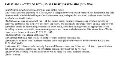 Example of a Small Business Set-Aside notice in a DLA Energy Direct Delivery PC&S Solicitation giving information of small business set aside opportunities with this procurement.