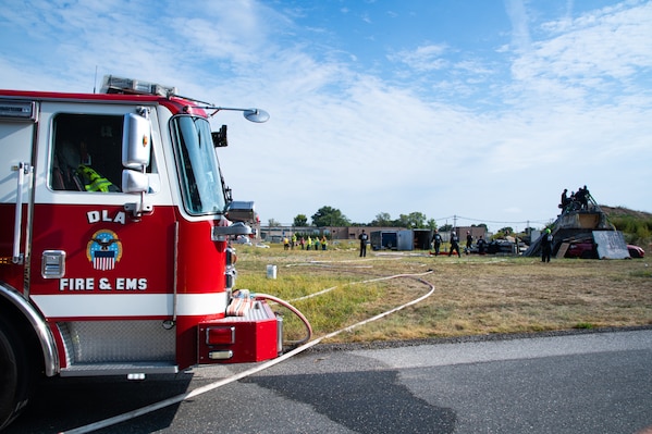 Defense Logistics Agency Installation Management at Susquehanna firefighters exercise their mass casualty response procedures during a full-scale exercise at the Defense Distribution Center, Susquehanna Sept. 23. The exercise, held in conjunction with National Preparedness Month, aimed to enhance the installation's emergency response capabilities. (DoW photo by Dorie Heyer, released)