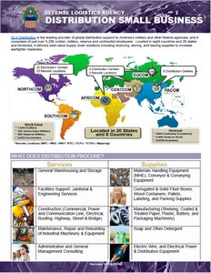 Distribution flyer provides information on what is procured, where to find procurement opportunities, major spend patterns, training opportunities, and contact info.