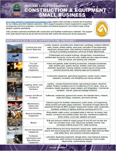 C&E flyer provides information on what is procured, where to find procurement opportunities, major spend patterns, training opportunities, and contact info.