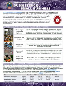 Subsistence flyer provides information on what is procured, where to find procurement opportunities, major spend patterns, training opportunities, and contact info.