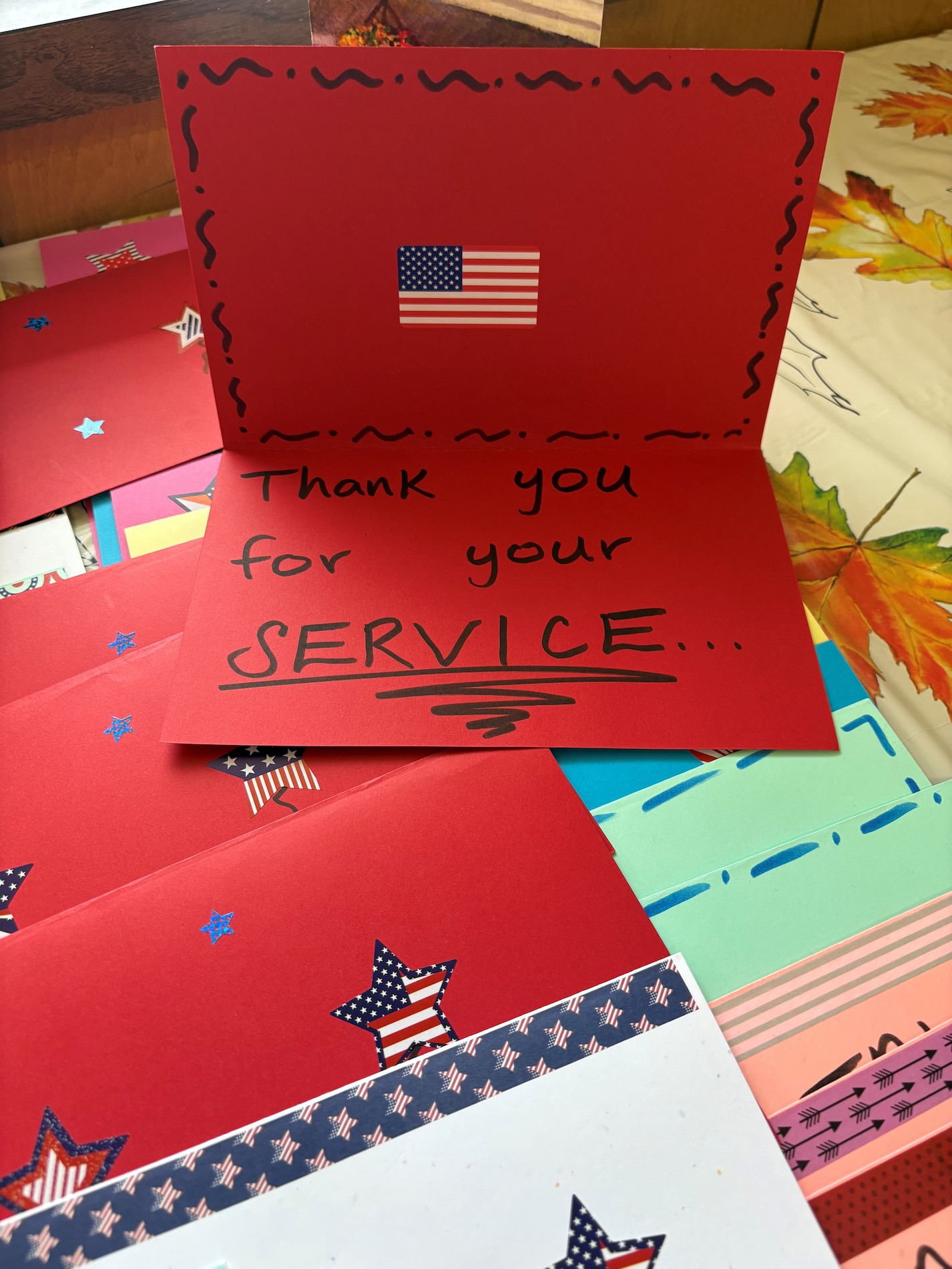 Thank you notes awaited veterans attending a Veterans Affairs Thanksgiving Luncheon Nov. 21 held at the American Legion Post 144 in Columbus, Ohio. Nearly a dozen service members from Defense Logistics Agency Weapons Support (Columbus) took a break from their usual duties to volunteer serving meals.