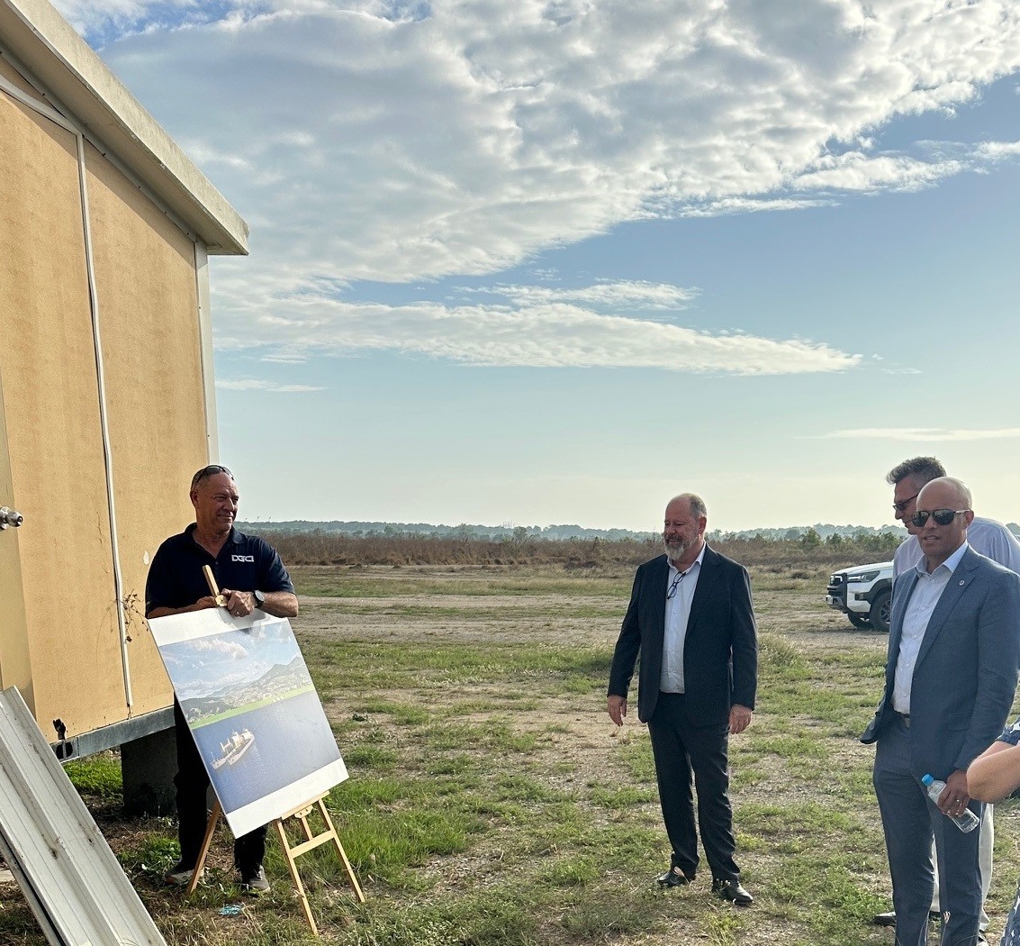 RDML Bresnihan (right) tours the site of the future Port Moresby DFSP and is presented with designs of the facility once constructed and operational.