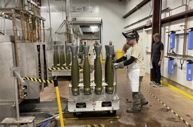 Army Contracting Command-Rock Island Arsenal Employees manufacture the M795 projectile at the Camden facility in Camden, Arkansas on April 22, 2025. Courtesy photo