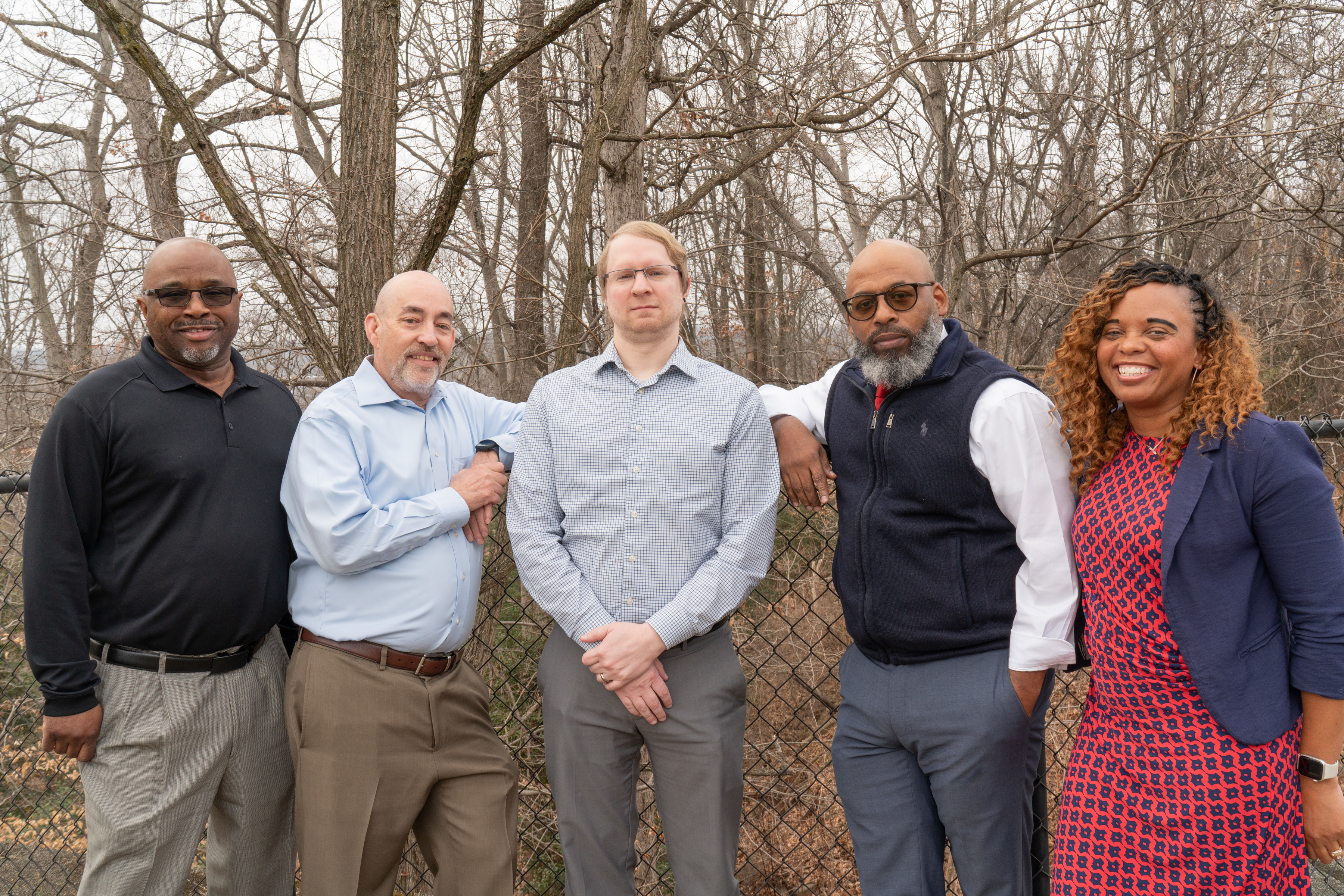 Members of the DLA Energy team who developed an innovative solution for military fueling in arctic environments pose for a photo on Jan. 6, 2026, at their office in Lorton, Virginia. Pictured are Emmanuel Stockdale, Ronnie Pelayo, Todd Lane, Andre Farley and Tene McAdams of the Business Process Support Directorate. (Photo by U.S. Army Master Sgt. Thaddeus Harrington)