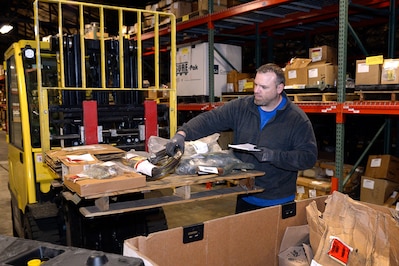 A DLA Disposition Services property identifier examines excess materials at an agency field site. The organization is using data-driven applications to make automated determinations about what property to prioritize for reuse and how to get critically needed items to military reutilization customers quickly.