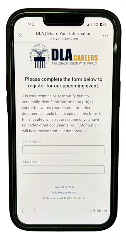 DLA job seekers may register for events and upload resumes onto the Yello platform via smartphone, tablet or computer. DLA courtesy photo. Released.