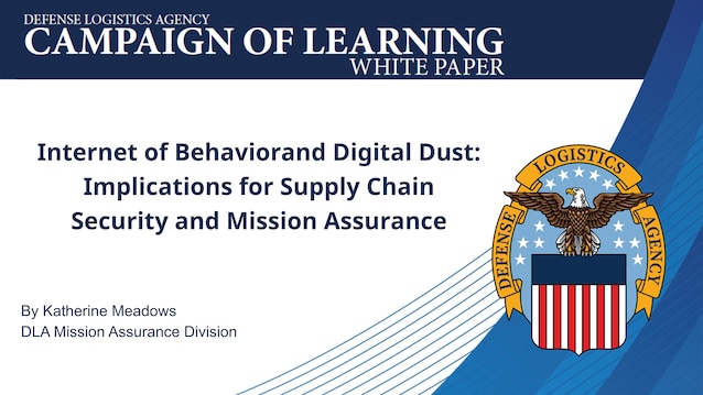 Graphic for the white paper "Internet of Behavior and Digital Dust: Implications for Supply Chain Security and Mission Assurance" by Katherine Meadows, DLA Mission Assurance Division.