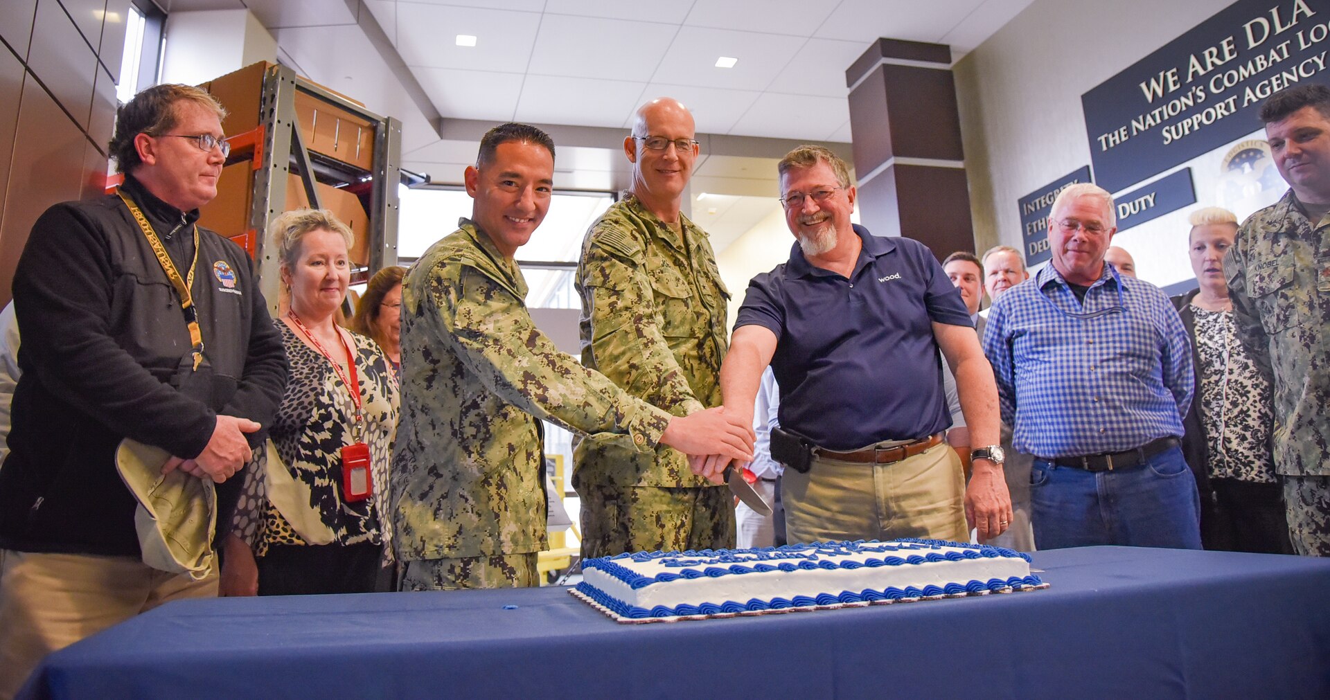 To honor the United States Navy’s 244th birthday, Defense Logistics Agency Distribution employees gathered in the Distribution headquarters lobby Oct. 16.