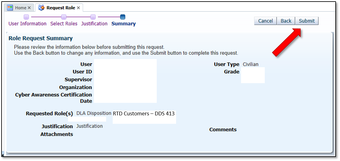 Once a user has created their account in AMPS, they now need to request the one required Role to gain access to the ETIDWeb System (DLA Disposition Prod – ETID Customer DDS-514).