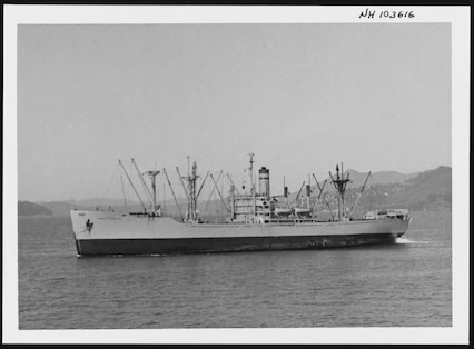 Photo of USNS Sgt. Andrew Miller (T-AK-242) riding high in ballast, circa the 1960s. Official U.S. Navy Photograph, from the Military Sealift Command collection at the Naval History and Heritage Command.