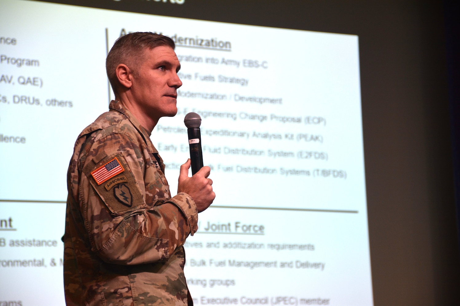 Army Col. Mike Schulte, US Army Petroleum Center director, speaks at the Defense Logistics Agency Energy annual Joint Petroleum Seminar (JPS), during Joint Petroleum Week (JPW), on Feb. 25, 2026, at the McNamara Headquarters Complex, Fort Belvoir, Virginia. (Photo by Ebony Gay)